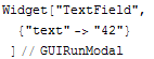 GUI programmers refer to modal and modeless windows. The above window is termed a 'modal' window because the program enters a different 'mode' while the window is being displayed. Modeless windows (displayed using GUIRun) are more like the palette windows (actually tiny notebooks) that open when you start a newly installed Mathematica. It is normal for windows of this kind to get covered up – since the program does not enter a different mode for the time while they are visible. Observe that if you are contemplating a large GUI application, it is important to think early on about the relationship between your GUI windows and the existing notebook interface. If you want to interact with your user via a modal window, will he or she need to refer to information in a notebook in order to respond? Using textfieldsHere is an example of a "TextField" Widget. Almost every serious GUI application will use several of these to prompt the user for input.